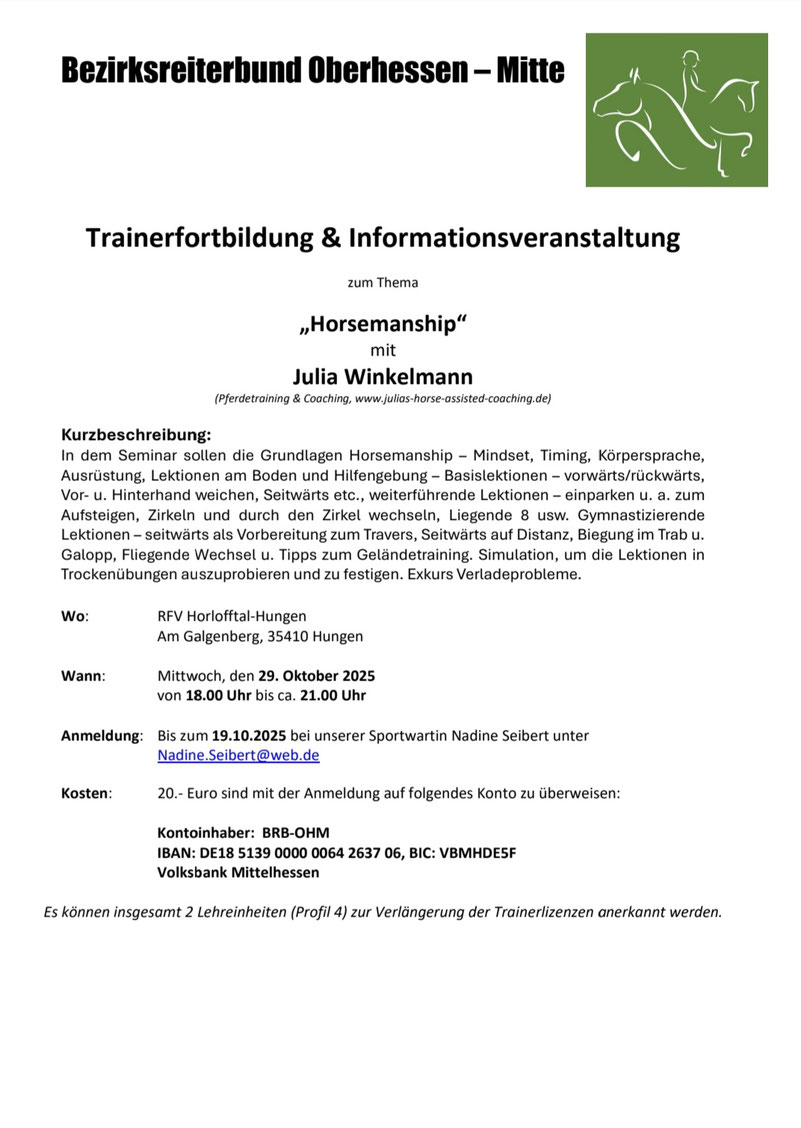 Abendveranstaltung: Trainerfortbildung und Informationsveranstaltung "Horsemanship"